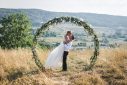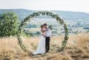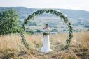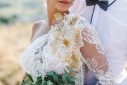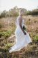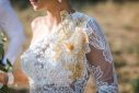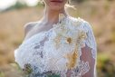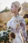 Große Blüten mit feinen transparenten Pailletten zieren die Spitze aus der dieser wandlungsfähige Dreiteiler gearbeitet ist. Goldig schimmert die große mit Perlen bestickte Spitzenblüte von der Schulter des asymmetrischen Oberteils. Drapierte Spitzenblüten zieren das Top mit einem Ärmel und hauchen dem Blütenmuster noch mehr Leben ein. Der zarte Stoff verhüllt in mehreren Lagen und verdeckt die eingearbeiteten nudefarbenen Cups die kaum zusehen sind. Das Oberteil ist seitlich mit versteckten Häckchen zu schließen. Auch ohne die abnehmbare goldene Spitzenblüte ist das edle Top ein wahrer Blickfang. Der schlichte schmal geschnittene Taillienrock aus Satin und mit kleiner Schleppe lässt sich hervorragend dazu kombinieren. Für einen noch extravaganteren Look, lasst sich darüber ein langer Spitzenrock mit Schleppe tragen. Wie Tautropfen glitzern die feinen transparenten Pailletten dann im Sonnenlicht auf den großen Blütenmuster der Spitze von Top und Rock. Weitere Rockvarianten verschaffen dem Look noch mehr Variationsmöglichkeiten. Von dem Weg zum Altar, zur Feier bis hin zur Partynacht ist damit ausgesorgt und immer wieder überraschend.