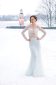 Verträumt und extravagant zugleich, perfekt für alle, die den Winter und Schnee lieben. Das Schneeflockenkleid ist hochgeschlossen und langärmlig. Im Rücken wird es mit transparenten Knöpfen geschlossen, die an Eiskristalle erinnern. Das Kleid ist reichlich bestickt mit filigranen weißen Perlen, die Schneeflocken ergeben. An der Brust bildet sich eine wunderschöne „Schneeschicht“ um Cups zu verstecken. Der schlanke und unten ausgestellte Meerjungfrauenschnitt schmeichelt der Figur. Genau wie die kleine angesetzte Schleppe am Kleid. Darunter getragen werden kann zum Beispiel ein Unterrock aus mintfarbenem Tüll mit Glitzer oder auch ein gesamtes Unterkleid. Ein zusätzlicher Wow-Effekt ist der Schleppenüberrock, der um die Taille gebunden dem Kleid zusätzliches Volumen und eine wunderschöne Schneeschleppe verleiht.