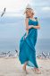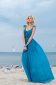 Wundervolles langes Seidenkleid mit aufwendigem Besatz in der Farbe Türkis. Das leichte Korsagenteil ist mit Seidenchiffon versehen welcher in Vorder- und Rückenteil in Falten gelegt ist und bis zum Boden reicht. Vom vorderen tiefen Ausschnitt ausgehend verlaufen zarte Bänder strahlenförmig bis zum Taillienband, welche die Figur sehr schön betonen und an eine Muschel erinnern. Das zarte und leicht transparente Chiffonkleid ist mit einem blickdichten Minikleid gefüttert. Das absolute Highlight dieses Traumkleides sind die aufwendig mit Hand bestickten Träger. Daran befinden sich verschiedene Perlen, kleine Korallenäste, Muscheln, Strasssteine und zu guter letzt ein abknöpfbares handzugeschnittenes Muschelelement aus Kunstleder auf jeder Schulterpartie. Nicht schwer zu erkennen ist, dass dieses Kleid seine Inspiration im Meer fand. Es ist Teil der „Sound of Ocean“ Couture Collection.