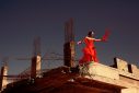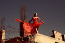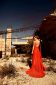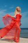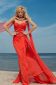 Atemberaubendes coralfarbenes Korsagenkleid mit tiefem Rückenausschnitt und mehrlagigem Rockteil aus Seidenchiffon. Die Seide auf der Korsage ist aufwendig drapiert und in Handarbeit angenäht. Ein echter Blickfang ist der am Rückenteil angesetzte Halsschmuck der reichlich mit Perlen, Korallenästen und Muschelteilen bestickt ist. Vom der Schulter abgehend flattern zwei Chiffonschals den schönen Rückenausschnitt umsäumend entlang. Vorn enthüllt ein tiefer, jedoch eleganter Beinschlitz das kurze eingearbeitete Minikleid. Die Korsage ist stabil gearbeitet, mit Cups versehen und ist gefüttert. Dieses aufwendige und feminine Kleid ist Teil der „Sound of Ocean“ Couture Collection dessen Inspiration die warme, rote Sonne glühend über dem rauschenden Meer an einem lauen Sommerabend fand.