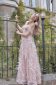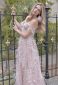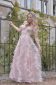 Ein Traum aus feinem Tüll besetzt aus unzähligen Pailletten, Perlen und zarten Federn die sanft im Wind zu schweben scheinen. Dieses roséfarbene Couture Kleid von Katrin Eulenstein besticht mit seinem Glamour und kann sowohl als Abendkleid als auch als moderne Hochzeitskleidvarinate getragen werden. Die eingearbeitete Korsage sorgt für einen sicheren Sitz und ermöglicht auch im Rücken einen tiefen Ausschnitt. Das reichlich verzierte Kleid macht trotz seiner Zierde einen leichten Eindruck uns lässt sich ebenfalls angenehm tragen. Die unteren Lagen des Rockteils sind auch leichtem Chiffon gearbeitet und verleihen dem Kleid einerseits Leichtigkeit und eine zarte Transparenz. Die filigranen Träger, die über den Rücken laufen, sind ebenso zart und verspielt gestaltet wie der Rest des Kleides.