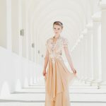 Lace Flower Dress Wunderschöne florale Spitze ziert das Oberteil dieses besonderen Kleides. In aufwendiger Handarbeit wurde die Spitze auf den beigefarbenen drapierten Chiffon genäht. Zusätzlich zur bereits besonderen Spitze mit Blüten wurden einzelne Perlen in die Blüten gesetzt. Bei dieser Kombination handelt es sich um ein kurzes Neckholderkleid das im Rücken zu Schließen ist und…