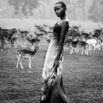 Into Wood – Deer Keine scheuen Rehe sind auf dem Print auf Seide zu sehen, in der sie in natürlicher Umgebung fotografiert worden sind. Der Seidenchiffon wurde aufwendig drapiert, in feinster Handarbeit vernäht und anschließend mit wertvollen Swarovski Kristallen in Form von zartem Geäst versehen. Entstanden ist ein Überkleid das Einzigartig ist. Perfekt kombinierbar ist…