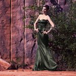 Sound of Ocean – Red Atemberaubendes coralfarbenes Korsagenkleid mit tiefem Rückenausschnitt und mehrlagigem Rockteil aus Seidenchiffon. Die Seide auf der Korsage ist aufwendig drapiert und in Handarbeit angenäht. Ein echter Blickfang ist der am Rückenteil angesetzte Halsschmuck der reichlich mit Perlen, Korallenästen und Muschelteilen bestickt ist. Vom der Schulter abgehend flattern zwei Chiffonschals den schönen…
