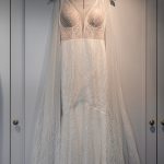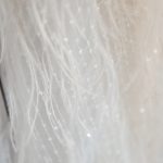 WILD DEW MEADOW COUTURE DRESS IN LIGHT GREEN An eine verträumte Wildwiese im Morgentau mag dieses romanische Spitzenkleid mit wunderschönen zarten Blumen und Ranken erinnern. Frisches mintgrün mit zart pastellenen aufapplizierten Blüten in rosé, hellblau und lichtgrün. Feine Perlen zieren Blüten und Blätter und schimmern dezent im Licht. Lange Ärmel, freie Schultern und eine zweilagige…