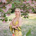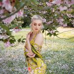 YELLOW CHERRY BLOSSOM OUTFIT WITH OWLS Erfrischend wie der Frühling – zartes Gelb, roséfarbene Blüten, grüne Blätter und Streifen zieren diese traumhafte Dreierkombi bestehend aus einem Neckholdertop, einem Wickelrock und einer Stola aus 100% Seide. Ein besonderer Blickfang sind dabei die Eulen und Rosen, die sich zwischen den Kirschblütenzweigen verstecken. Das Oberteil ist im Nacken…