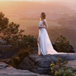 White Blowballs & Birds Dress Wundervoll verträumt und luxuriös kommt das drapierte und reichlich bestickte Überkleid mit dem edlen Satinunterkleid daher. Pusteblumen, Vögel und zarte Äste zieren diese wunderschöne und außergewöhnliche Spitze des Kleides. Vorn reichlich mit verschiedenen Perlen, Pailletten und Strass bestickt, zieren auf der Rückseite unzählige funkelnde Strasssteine dieses Hochzeitskleid. Das Überkleid wird…