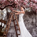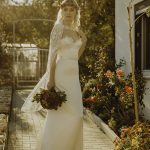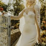 LITTLE WINGS WEDDINGDRESS & LACEEARRINGS Eine wundervolle Spitze die an kleine Flügel erinnert ziert dieses figurbetonte Brautkleid im Meerjungfrauenstil. Eine eingearbeitete Korsage ermöglicht den tiefen Rückenausschnitt des Unterkleides aus Satin in Ecru. Das geschwungene Muster mit kleinen Flügeln schmeichelt den Kurven der Frau. Im Vorderteil sowie im Rückenbereich verläuft die Spitze über den Ausschnitt des…