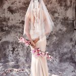 JACQUARD ROSES IN GOLD & ROSÉ Ein wundervolles Muster aus Jacquard Rosen in Rosé und Gold ziert dieses asymmetrisch geschnittene Couturekleid. Auf den zarten und transparenten Organzastoff sind die Blüten in strukturierter Optik gewebt. Das Gold schimmert saft im Licht. Das Oberkleid ist drapiert und in Handarbeit genäht. Roséfarbene Bänder mit schmaler Fransenkante zieren den…